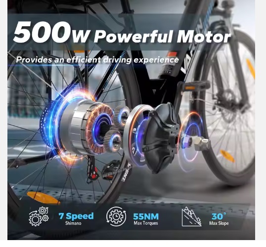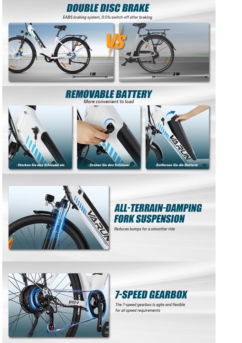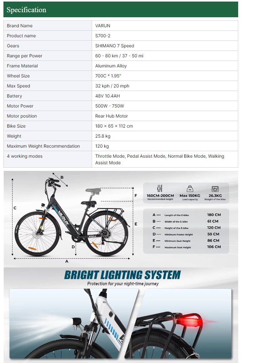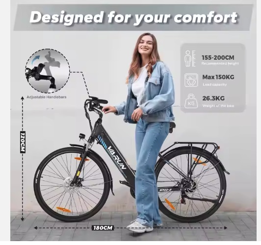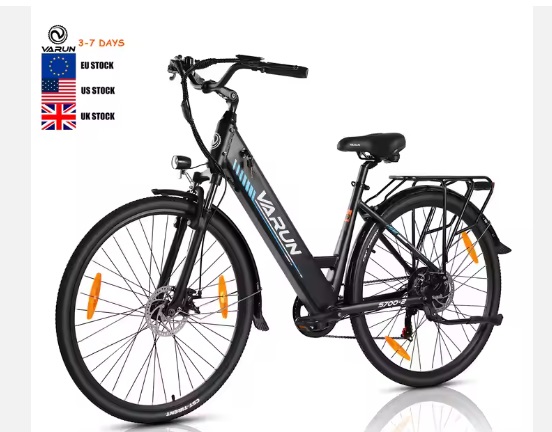 E Bike Varun EU Warehouse Stock Electric Hybrid City Bicycle 48V 10.4AH Long Rang Step-Thru E bike Lithium Battery Aluminium Electric Bike Color: Black