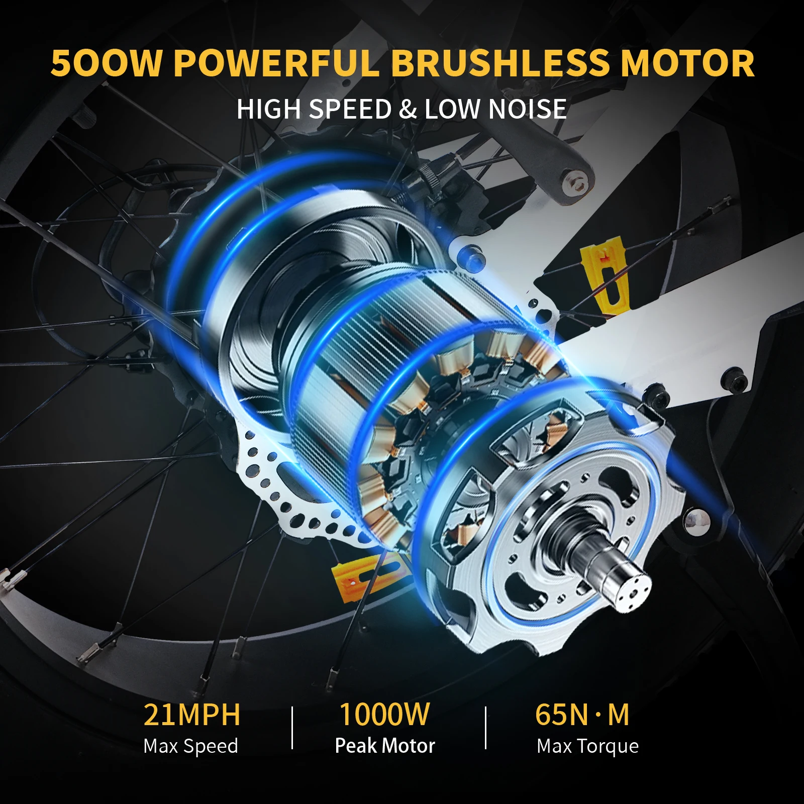 Motor: 48V 500W(1000W PEAK) Brushless Rear Hub Motor