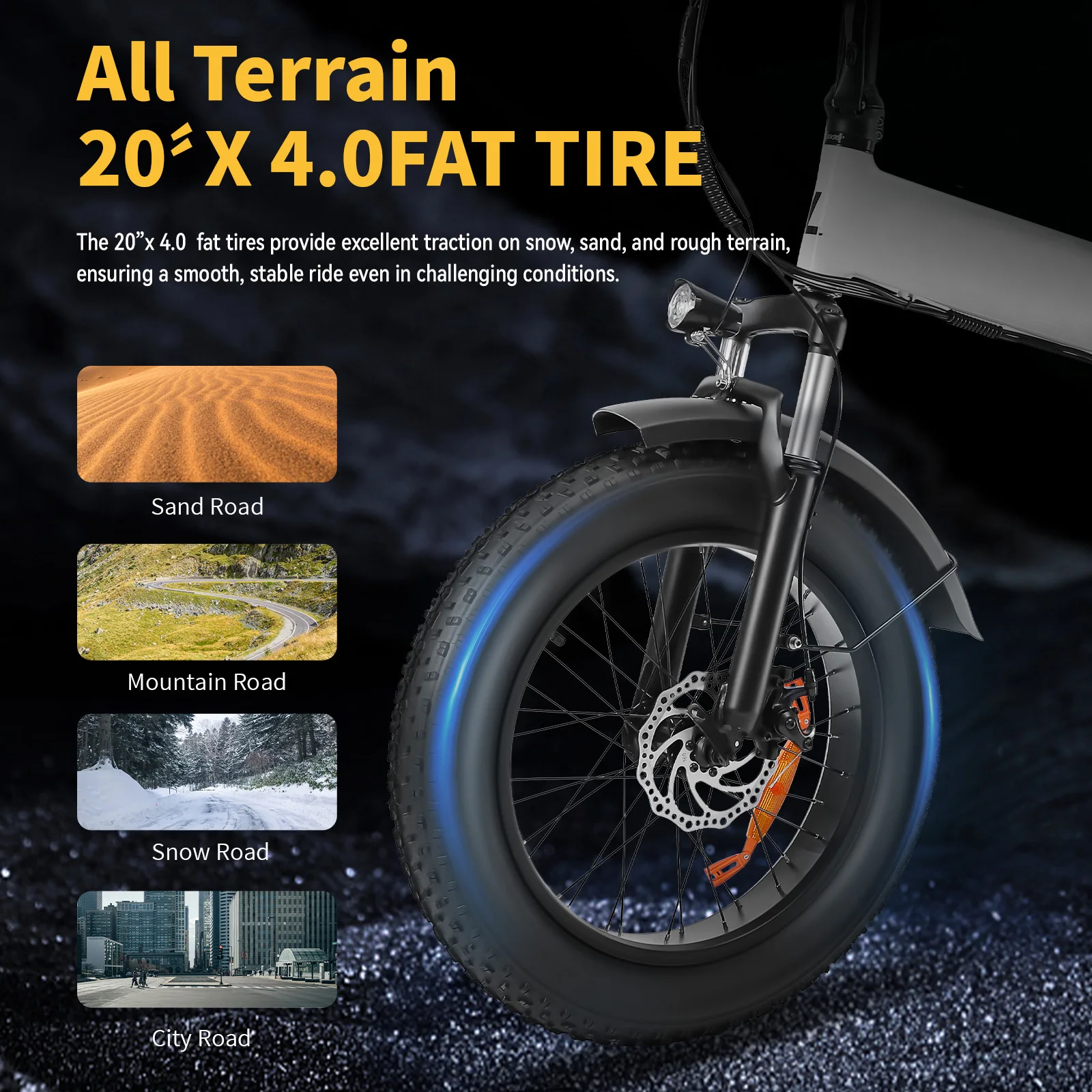 Tires: 20″ X 4″ Puncture-Resistant Fat Tires