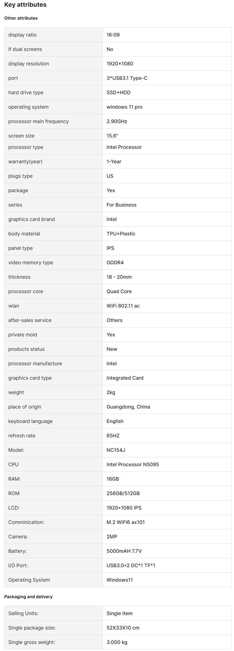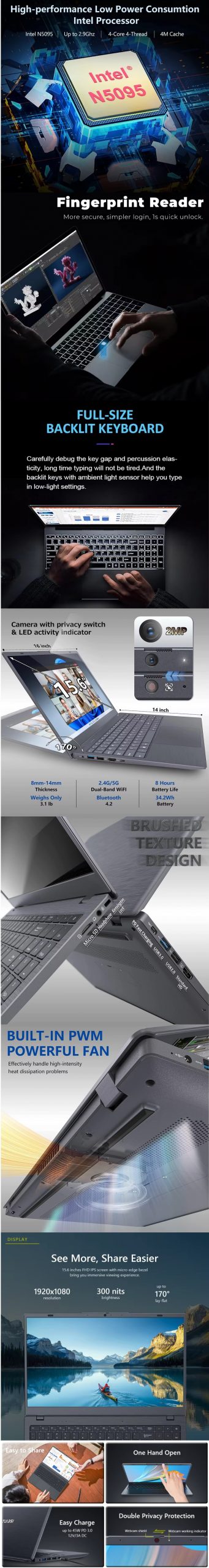 15.6 inch Win 11 laptops new N5095 2.90Ghz 16GB RAM 512GB ROM notbook pc portable laptop computer gaming laptop