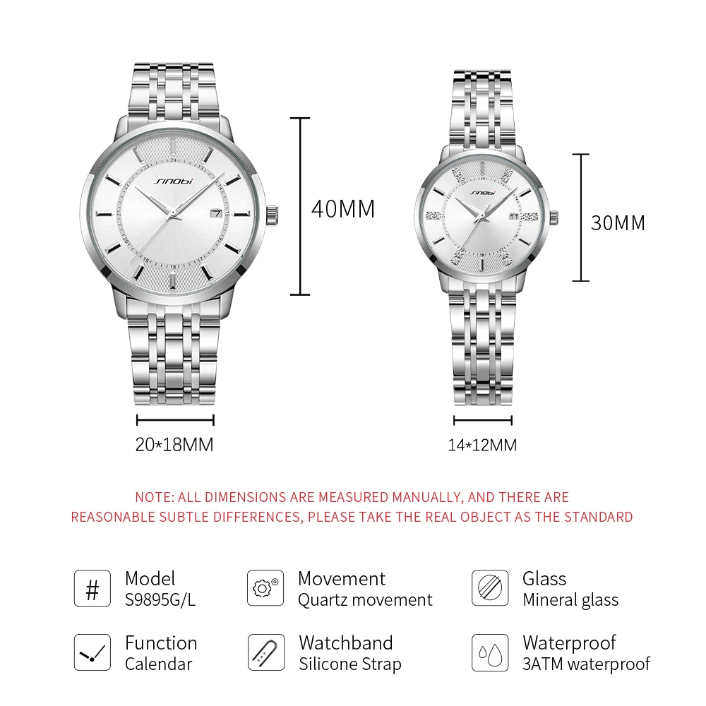 Luxury Fashion Alloy Couple Watch for Men and Women Waterproof Quartz Movement Stainless Steel Band Calendar Feature