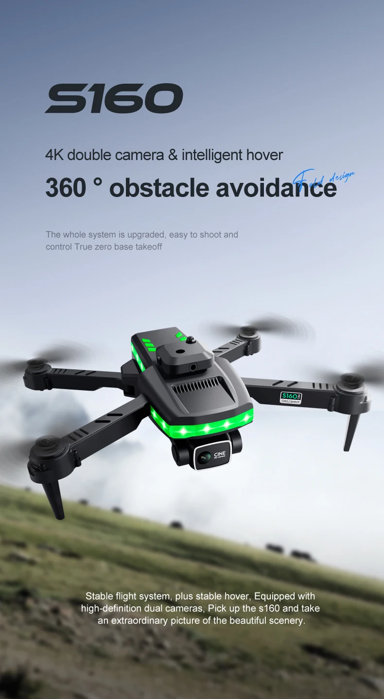 S160 Height Fixed 4 Sides Obstacle Avoidance Drone with 4k Camera 100m Phone Control Mini Drone Photography Uav Selfie Dron