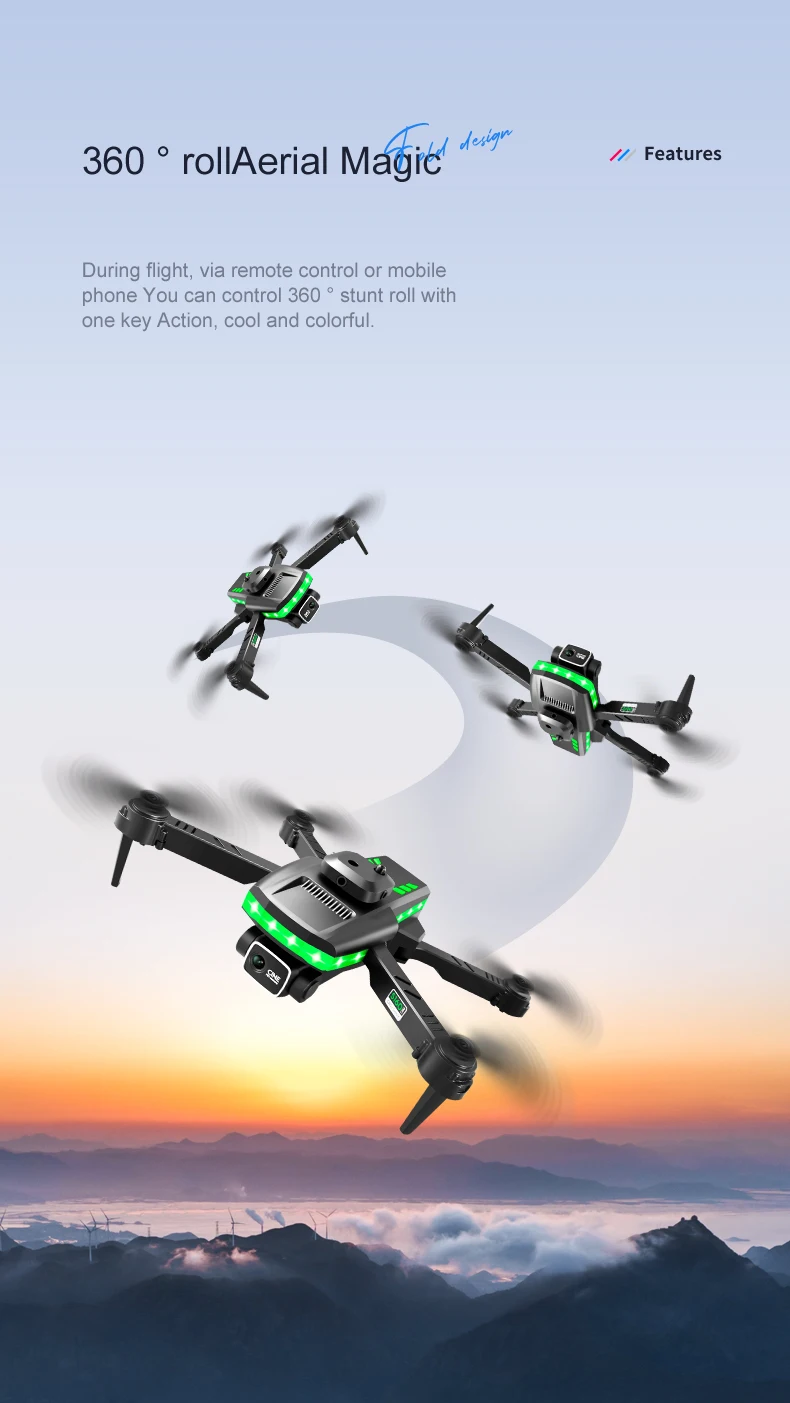 function: Headless mode,Altitude Hold Mode,With Camera,With LED Lights,with G-sensor,One Key Takeoff / Landing,App Control,With Remote Control,Foldable
